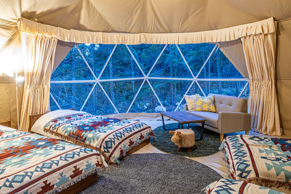 長野県安曇野市、北アルプスの麓に広がる安曇野の山麓に湧く温泉が魅力の<穂高温泉郷>に1日2組限定のグランピングドーム【glampark 檜湯の宿】がオープンします。