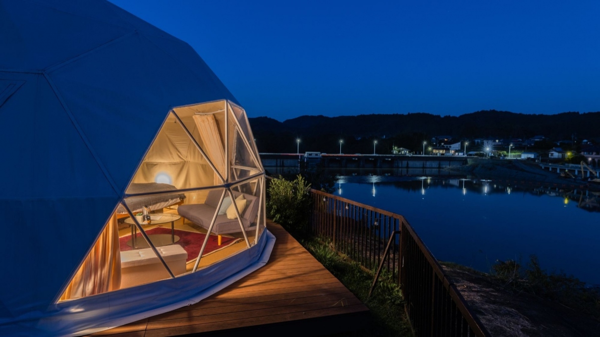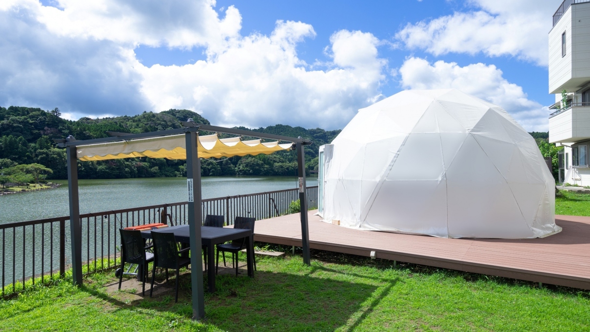 ※ドームテント周辺はウッドデッキ並びに芝生ですので、ご利用をご遠慮いただいております。予めご承知おきくださいませ。