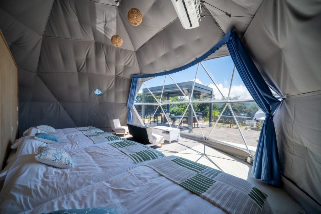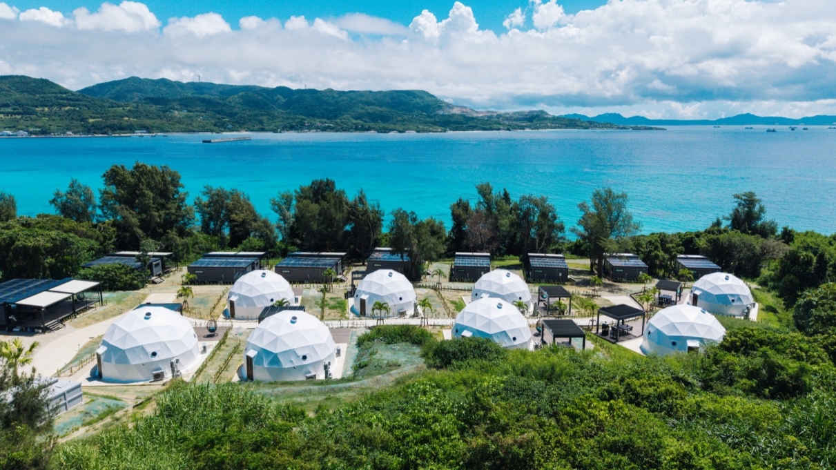 glampark瀬底 -Ocean Terrace- は、広々とした大型コンテナハウスとドームテントで贅沢な時間をお届けします。