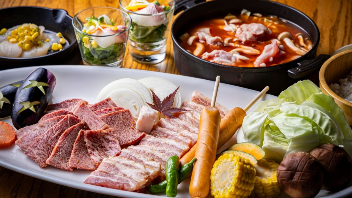 夕食には、赤身と脂の旨みが絶妙な「但馬牛」を使ったご当地BBQをご用意。